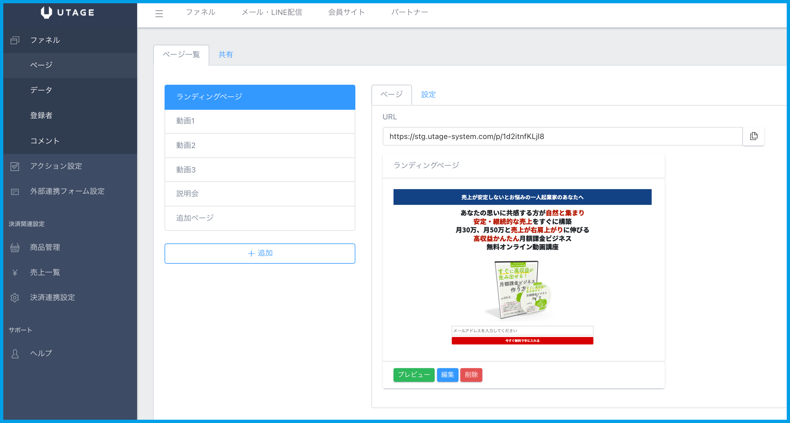 集客するためのページや販売ページを要する場合には、作成が必要となります。