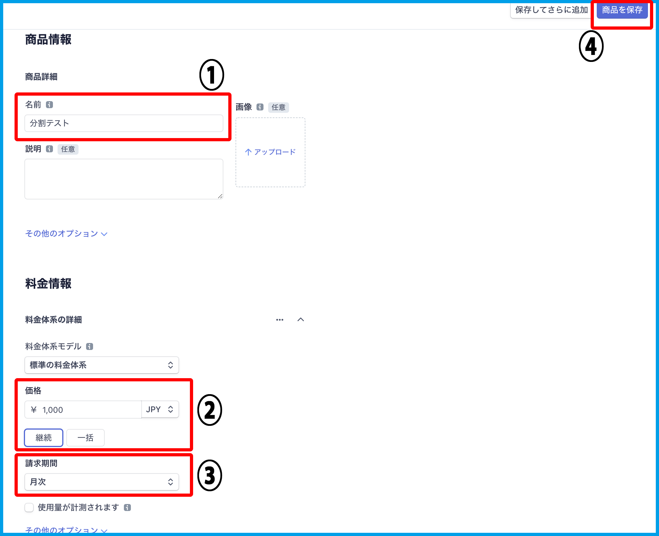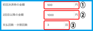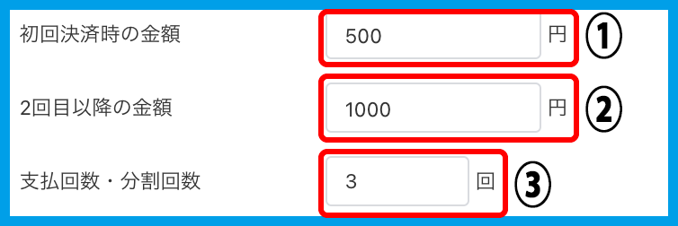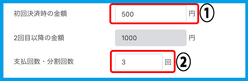 ②2回目以降の金額:2回目以降の支払い価格を入力します。