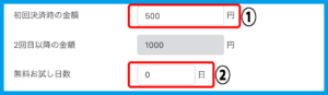 ②無料お試し日数:無料お試しを設ける日数を入力します。