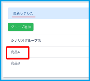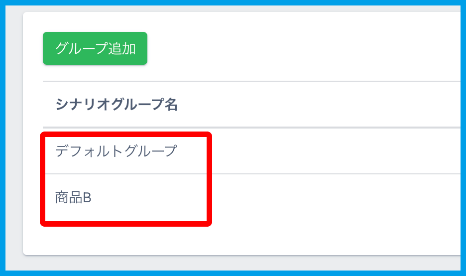 3.シナリオグループ一覧の上にある【グループ追加】をクリックします。