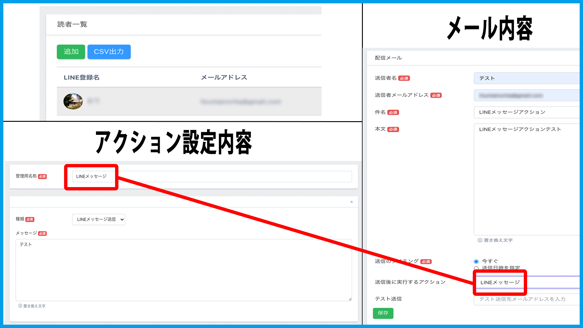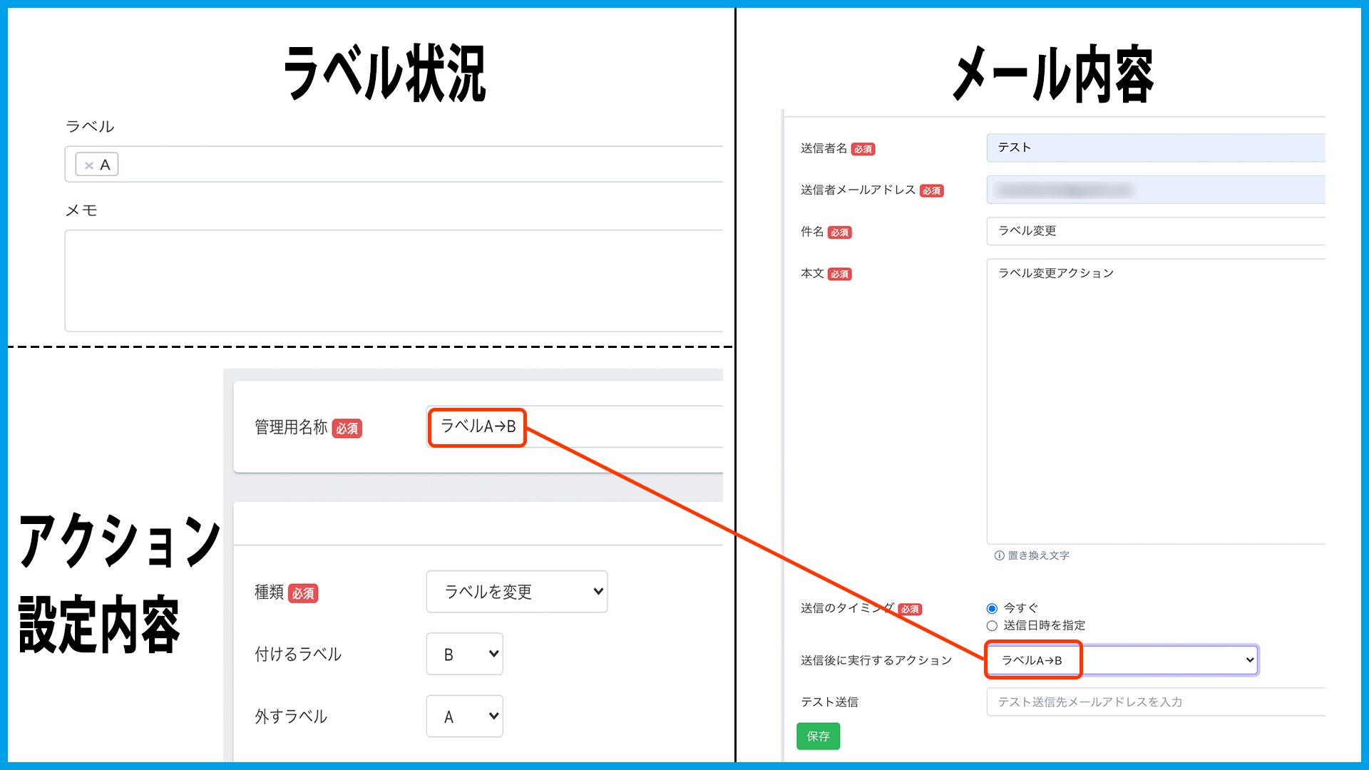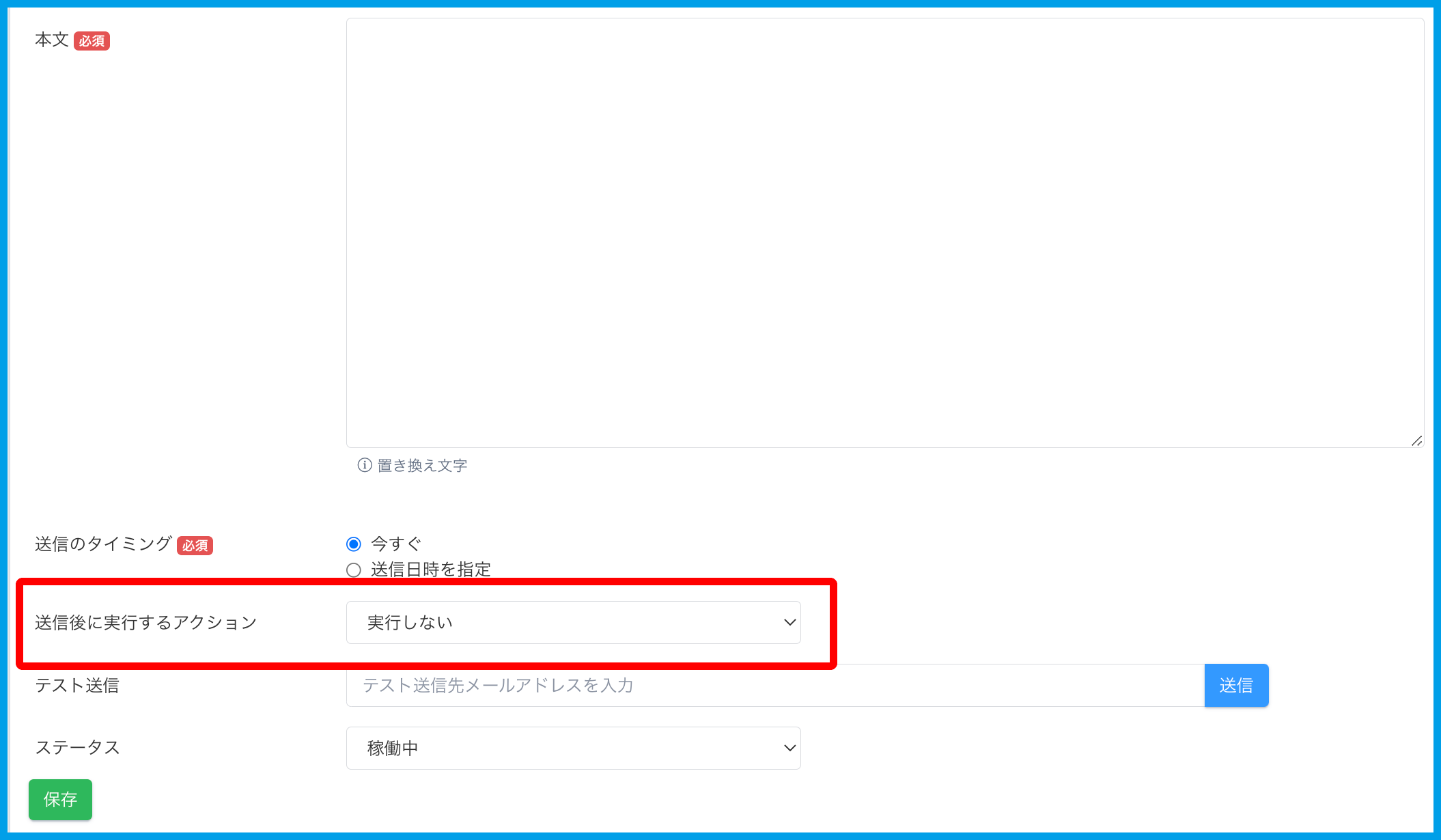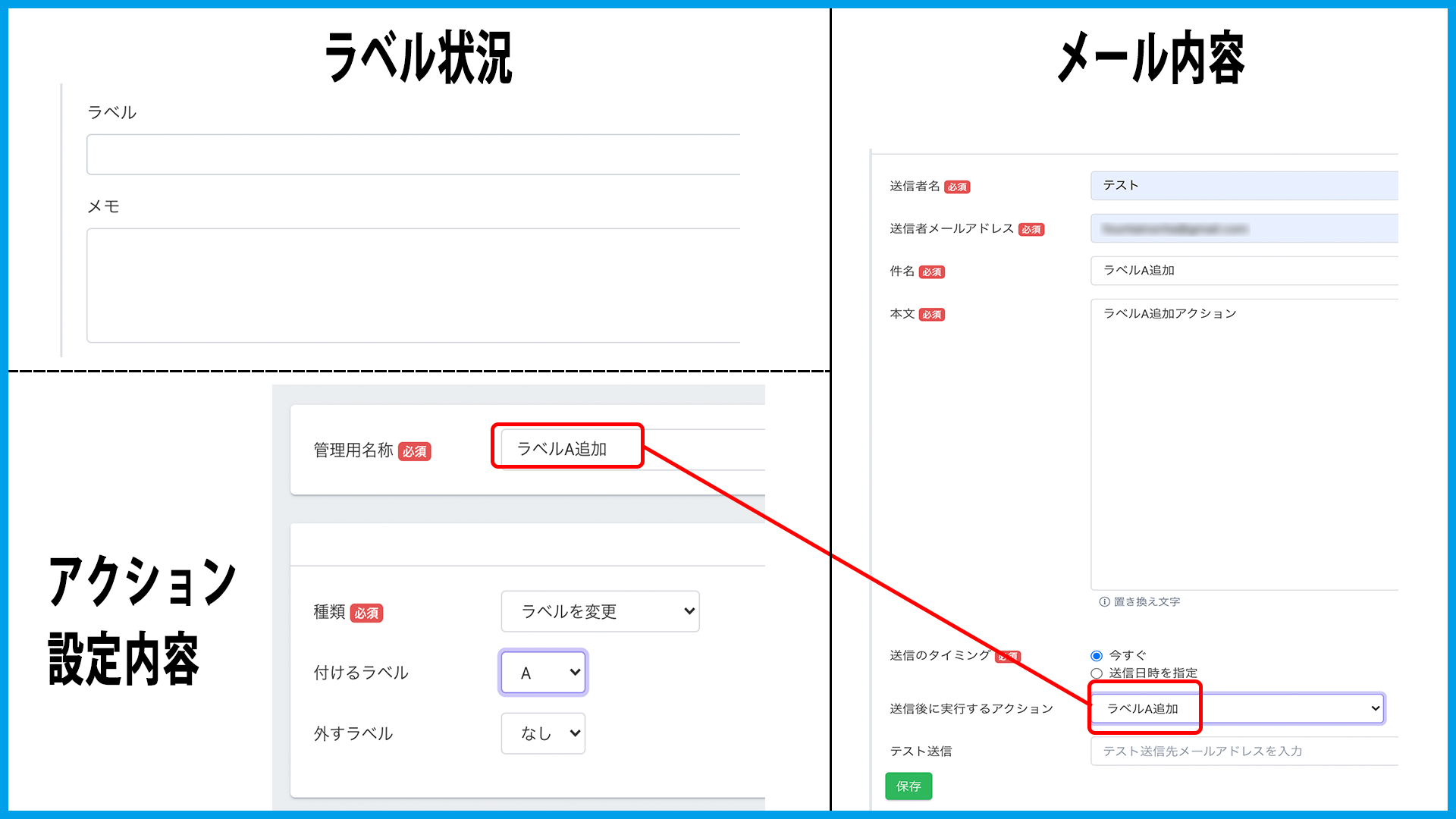 ・メール送信時にアクションを設定する場合