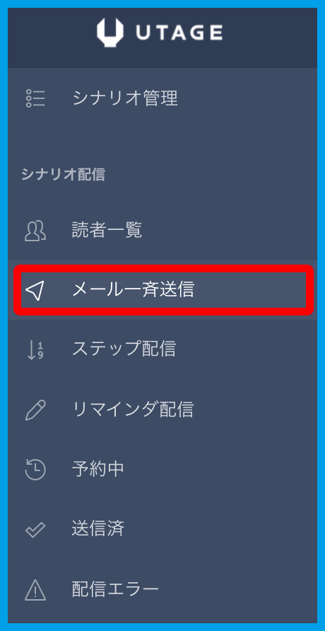 2.左メニュー【メール一斉送信設定】をクリックします。