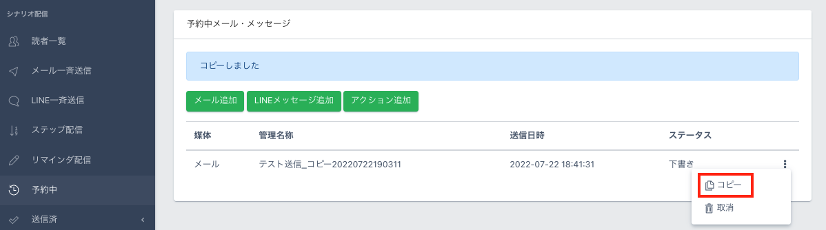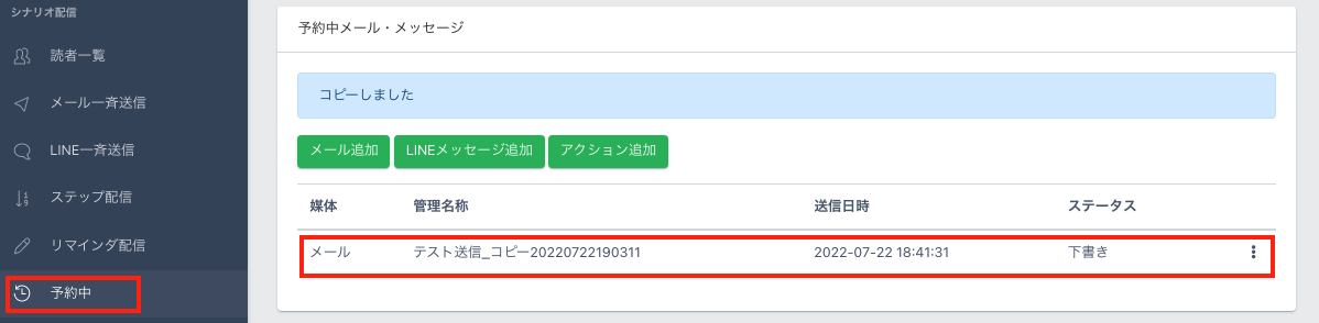 3.【予約中】のメールも同様にコピーが可能です。