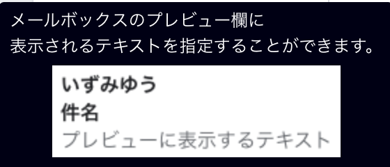 ・プレビューに表示するテキスト:メールボックスのプレビュー欄に表示されるテキストを指定することができます。