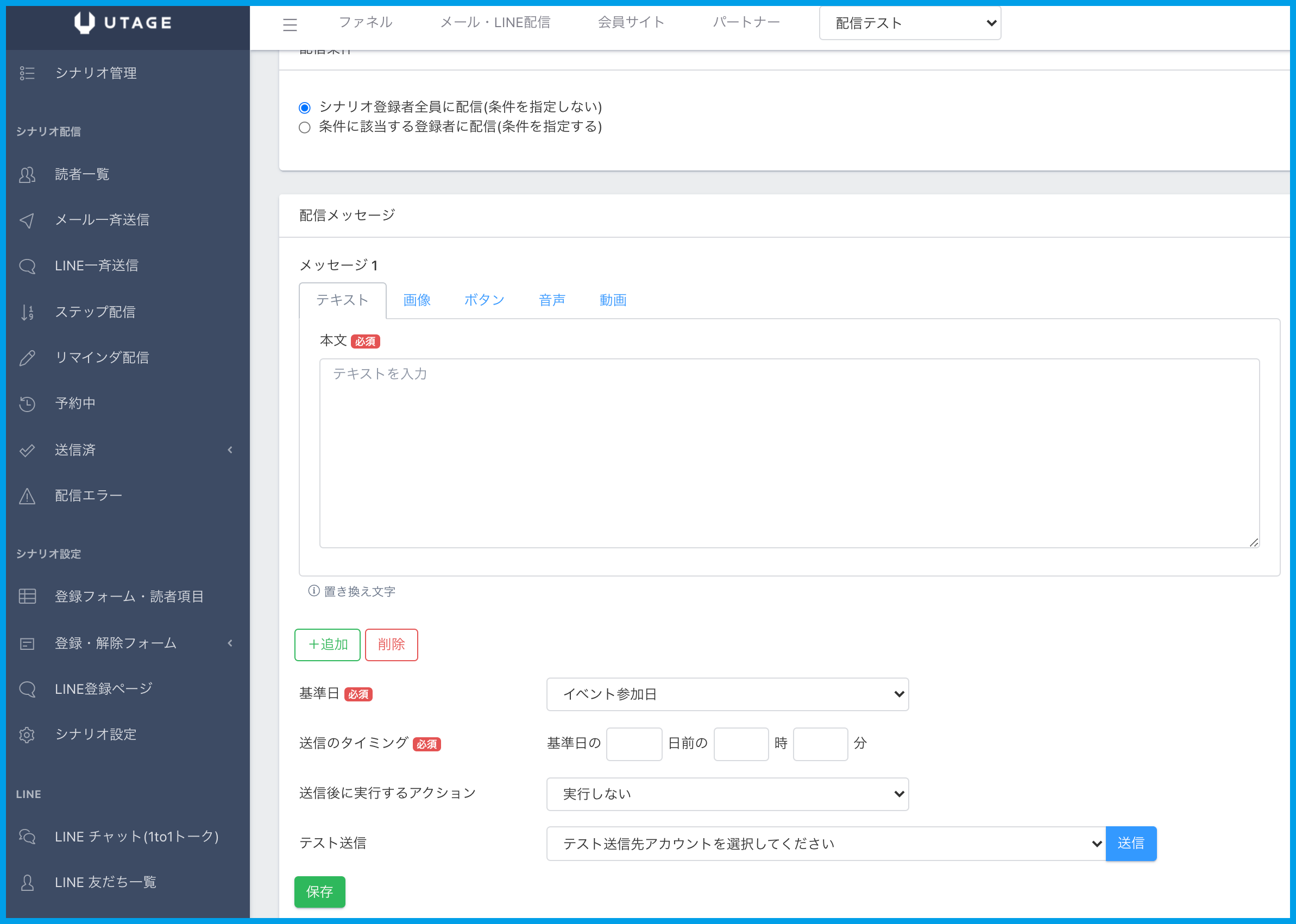3.配信条件や本文の編集は【LINE一斉送信設定】の手順3〜5をご参考ください。