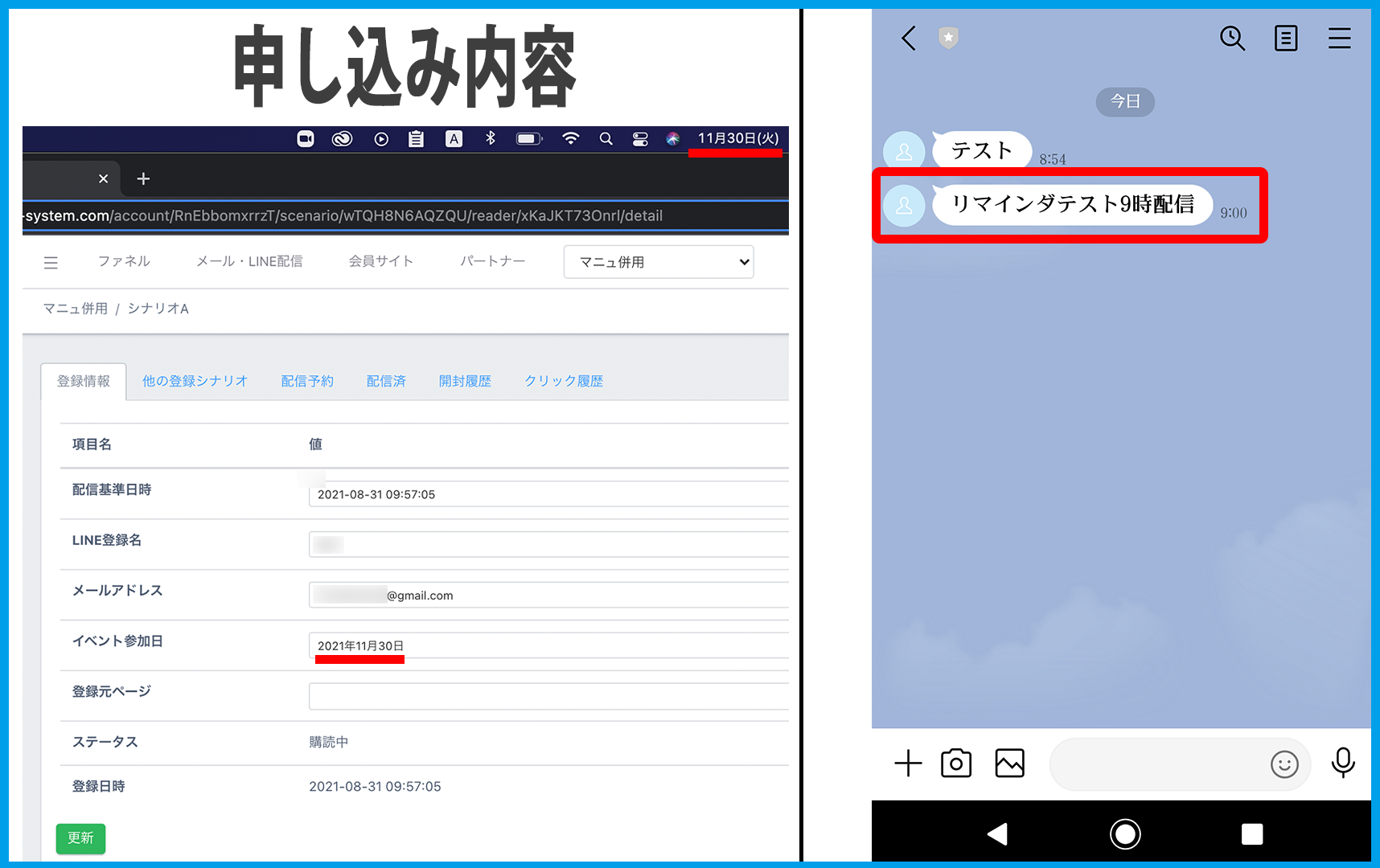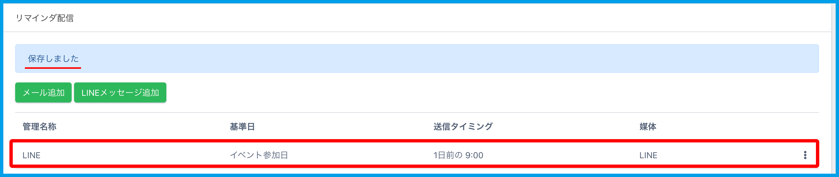 4.メッセージと、設定したリマインダが配信一覧に表示されます。