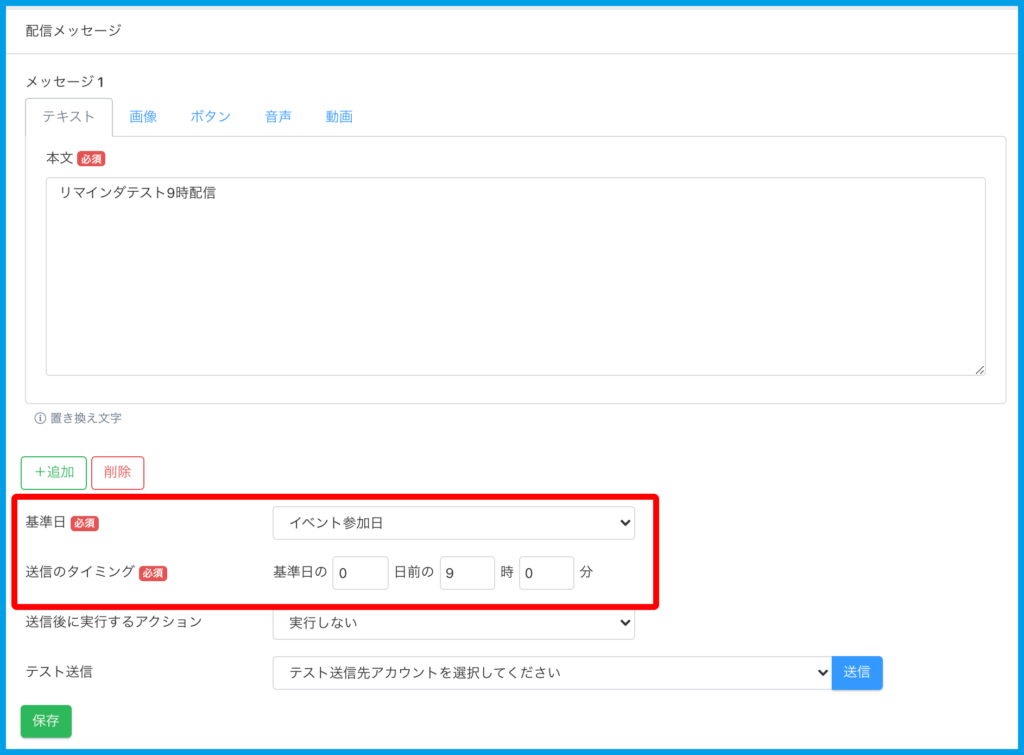 ※基準日、送信のタイミング設定は一斉送信と異なります。