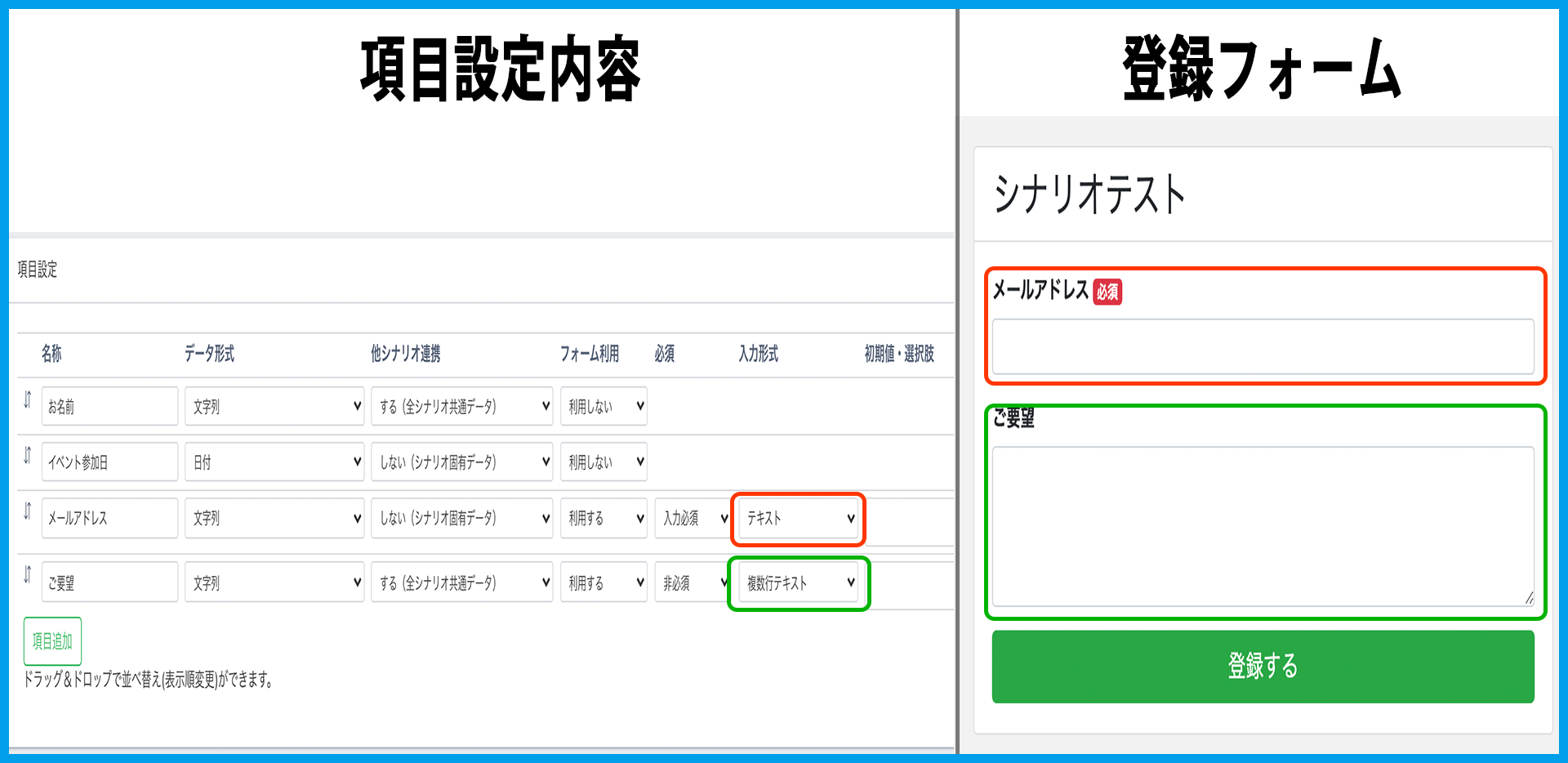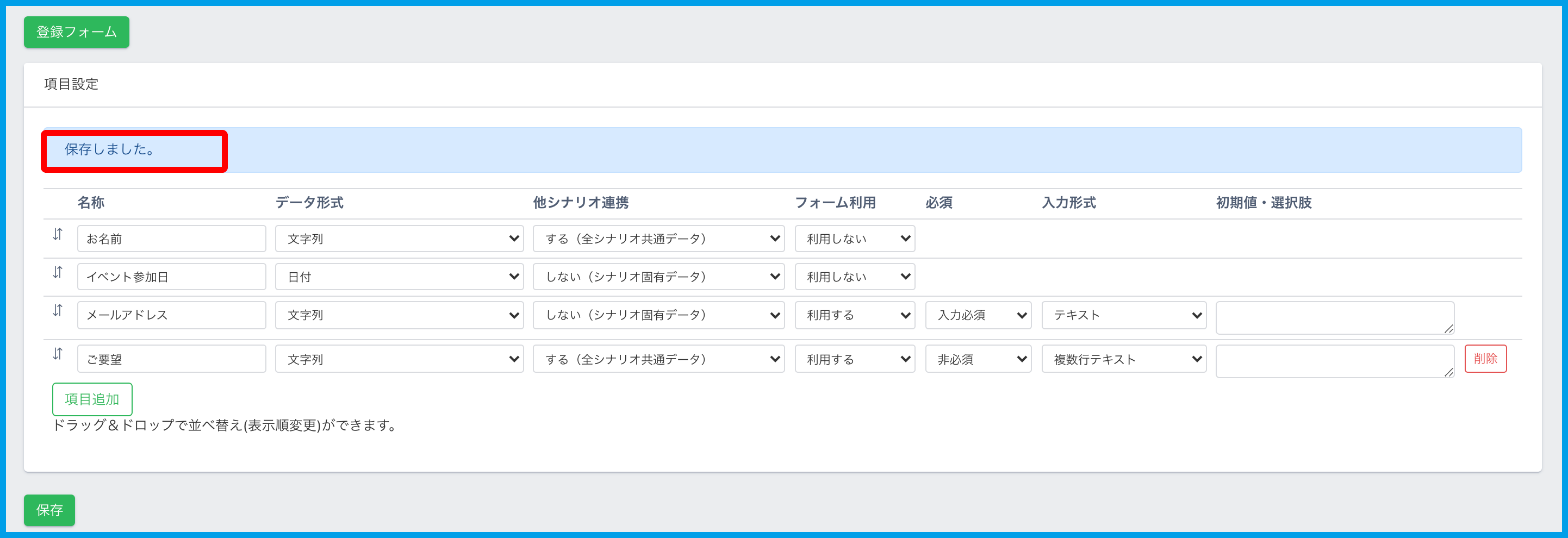 ●フォーム利用:登録フォームに利用「する」「しない」が選択できます。