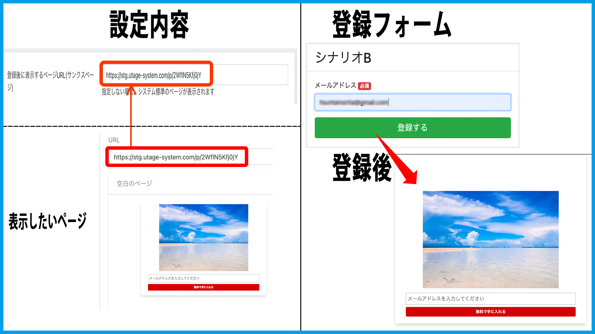 ・登録後に表示するページURL(サンクスページ)