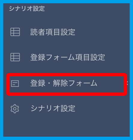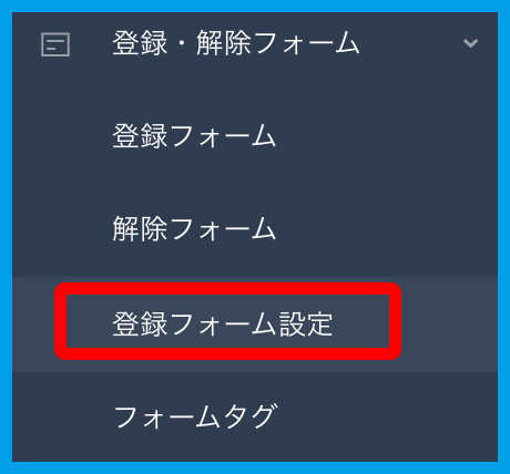 2.左メニュー【登録・解除フォーム】をクリックし、展開されるメニューから【登録フォーム設定】をクリックします。