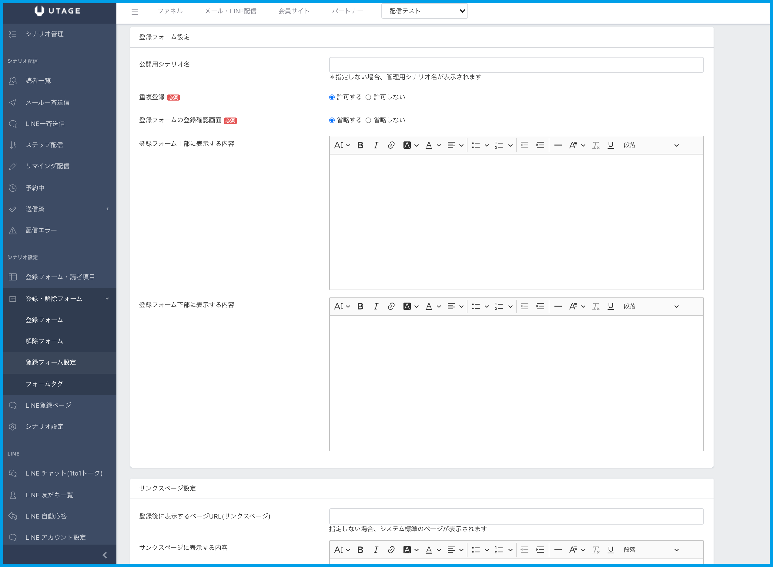 登録後に表示するサンクスページの設定ができます。