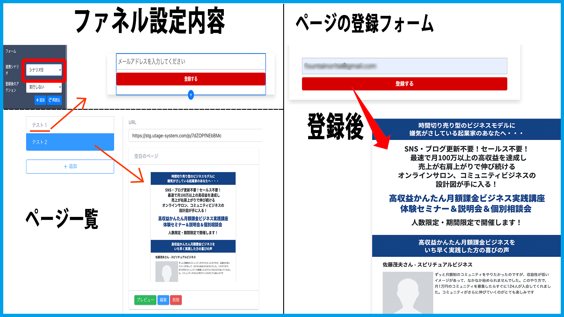 画像内では【ファネル】機能の「ページ」を利用しています。