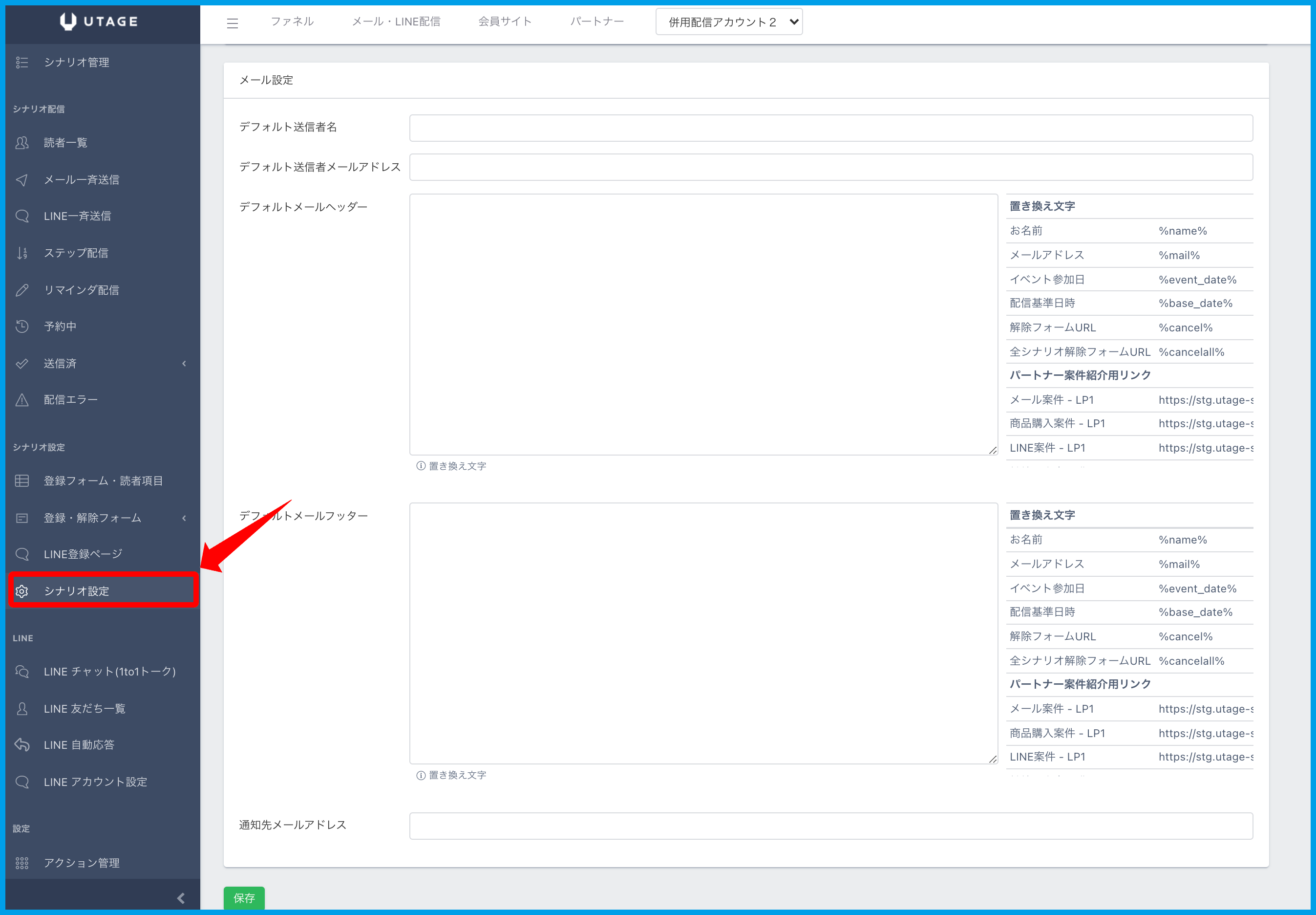2.左メニュー【シナリオ設定】をクリックします。