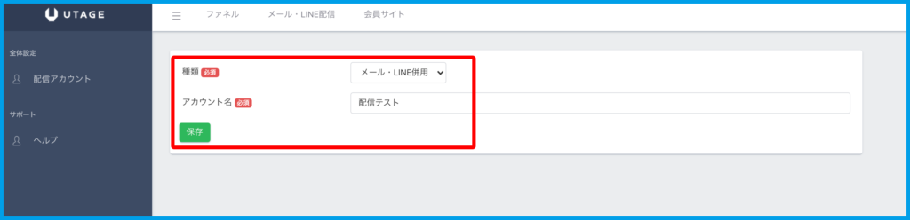 ・種類:「メール配信のみ」「LINE配信のみ」「メール・LINE併用」より選択できます。