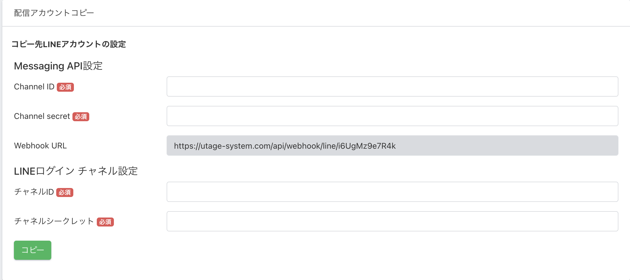 2.配信アカウントでLINEを使用している場合は(『LINEのみ』または『メール・LINE併用』)コピー先のLINEアカウント設定が必要になります。