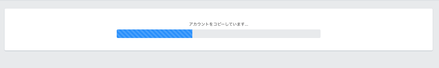 3.コピー先のLINEアカウント設定の入力が完了したら【コピー】ボタンを押下します。『アカウントをコピーしています』と表示されます。