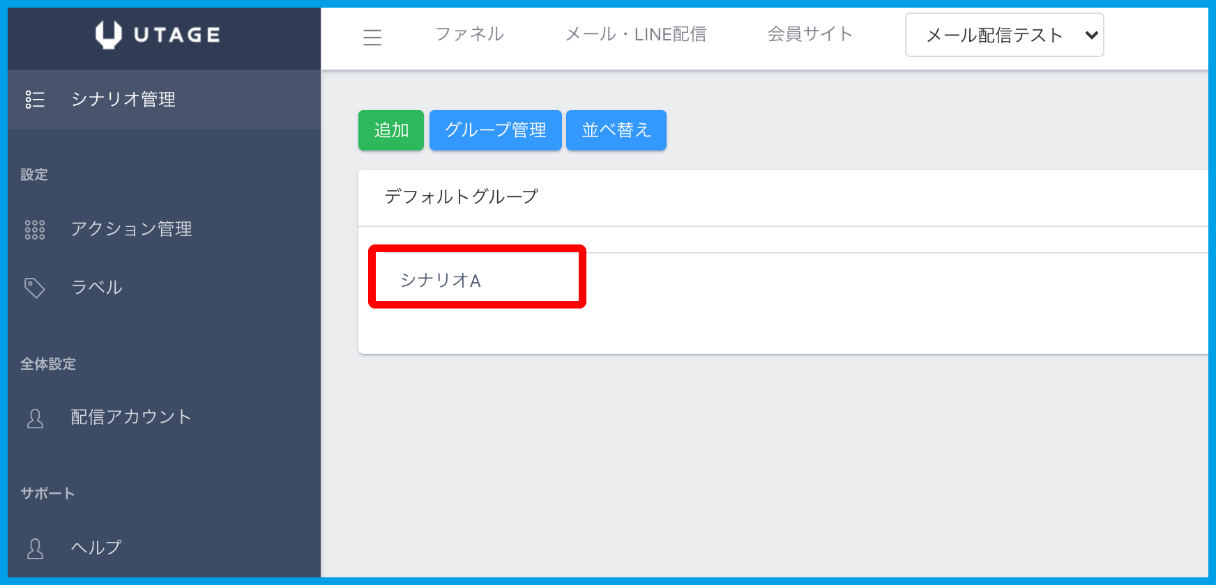 2.【シナリオ管理】から読者を追加するシナリオをクリックします。