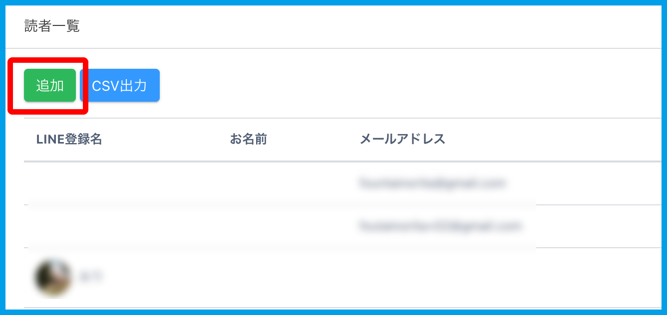 3.【読者一覧】画面となり「読者一覧」の【追加】をクリックします。