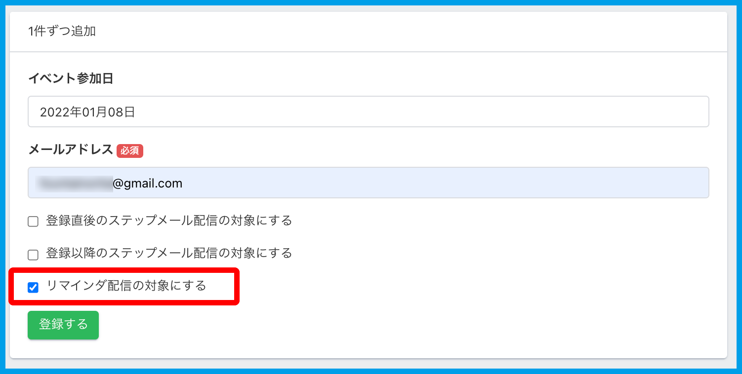 追加時に「登録直後/以降のステップ配信・リマインダ配信」の対象にするか否かを選択することができます。