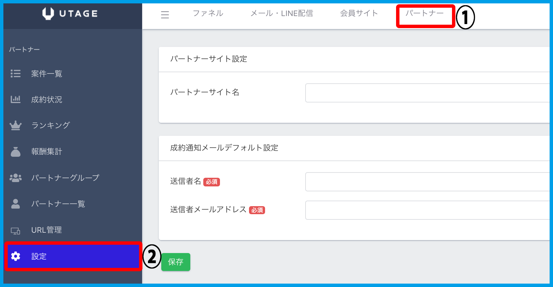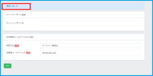 1.上メニュー【パートナー】>左メニュー【設定】をクリックします。