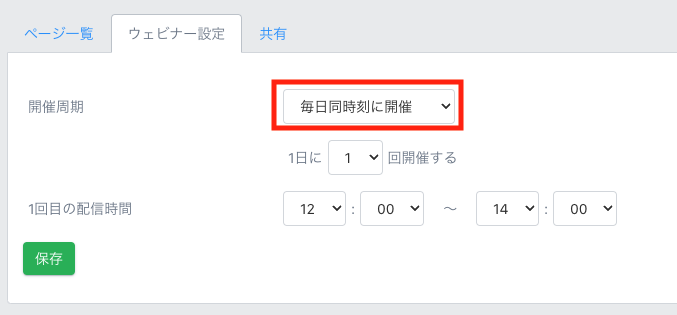 ・開催回数:1日の開催回数(1回or2回)を設定できます。