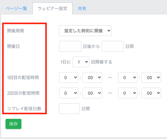 ・リプレイ配信日数:開催日後の動画視聴可能日数の設定ができます。