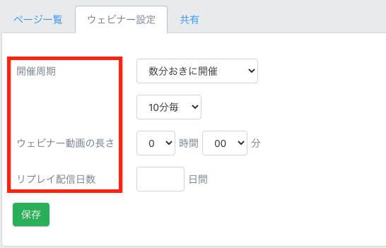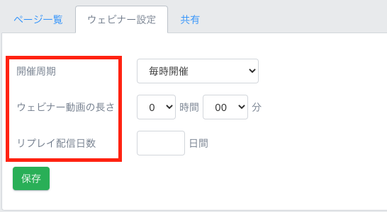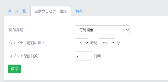 ・ウェビナー動画の長さ:再生するウェビナーの長さを設定してください。