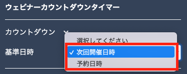 ・基準日時:カウントダウンタイマーをどの基準でカウントするかの設定ができます。
