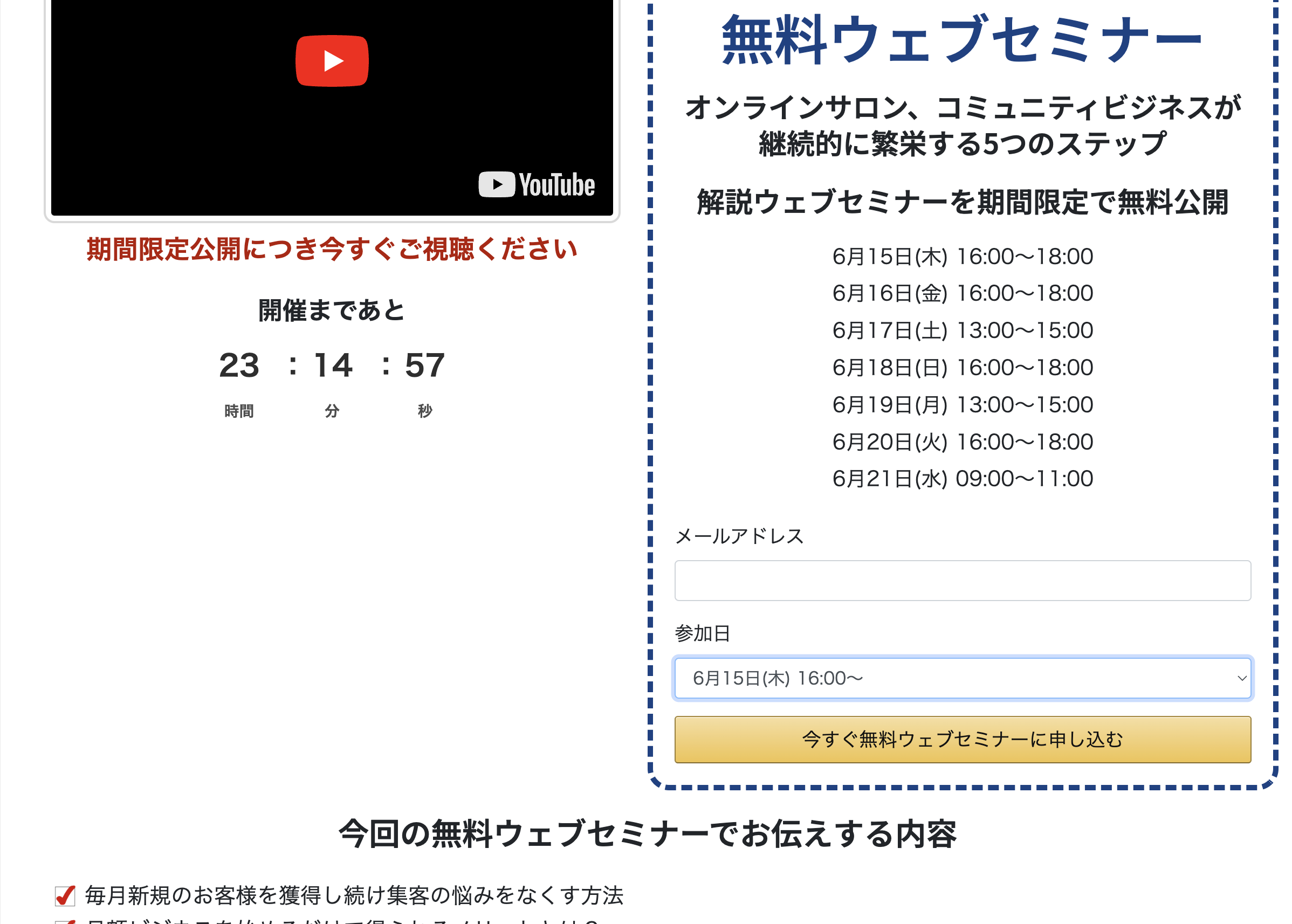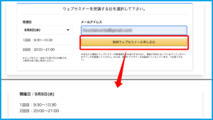 ウェビナー登録ページから登録したあと、予約した日時が自動で表示されるようになります。