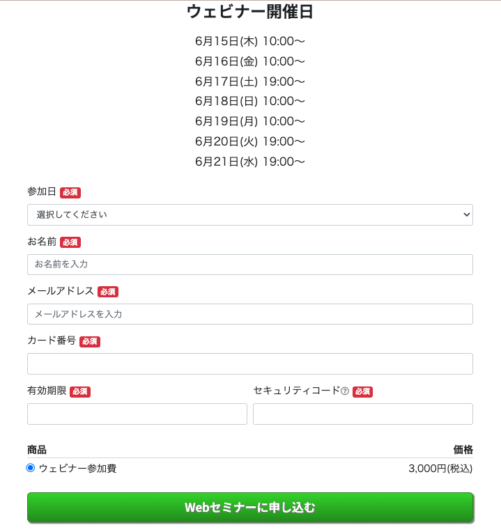 ウェビナー申し込みページ(決済)、ウェビナー視聴ページなどを作成します。