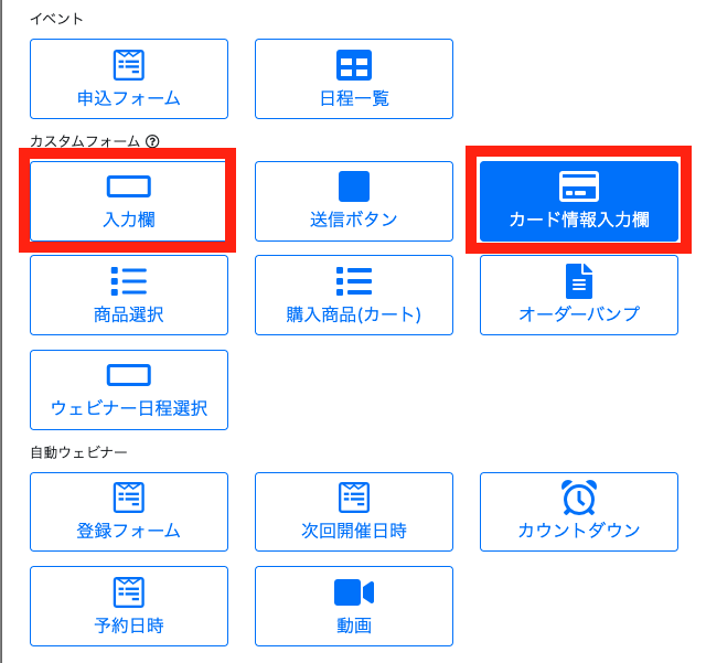 カスタムフォームの【カード情報入力欄】も挿入します。