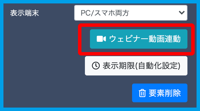 2.「ボタン」の設定メニューで【ウェビナー動画連動】をクリックします。