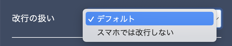 『デフォルト』『スマホでは改行しない』より選択頂けます。