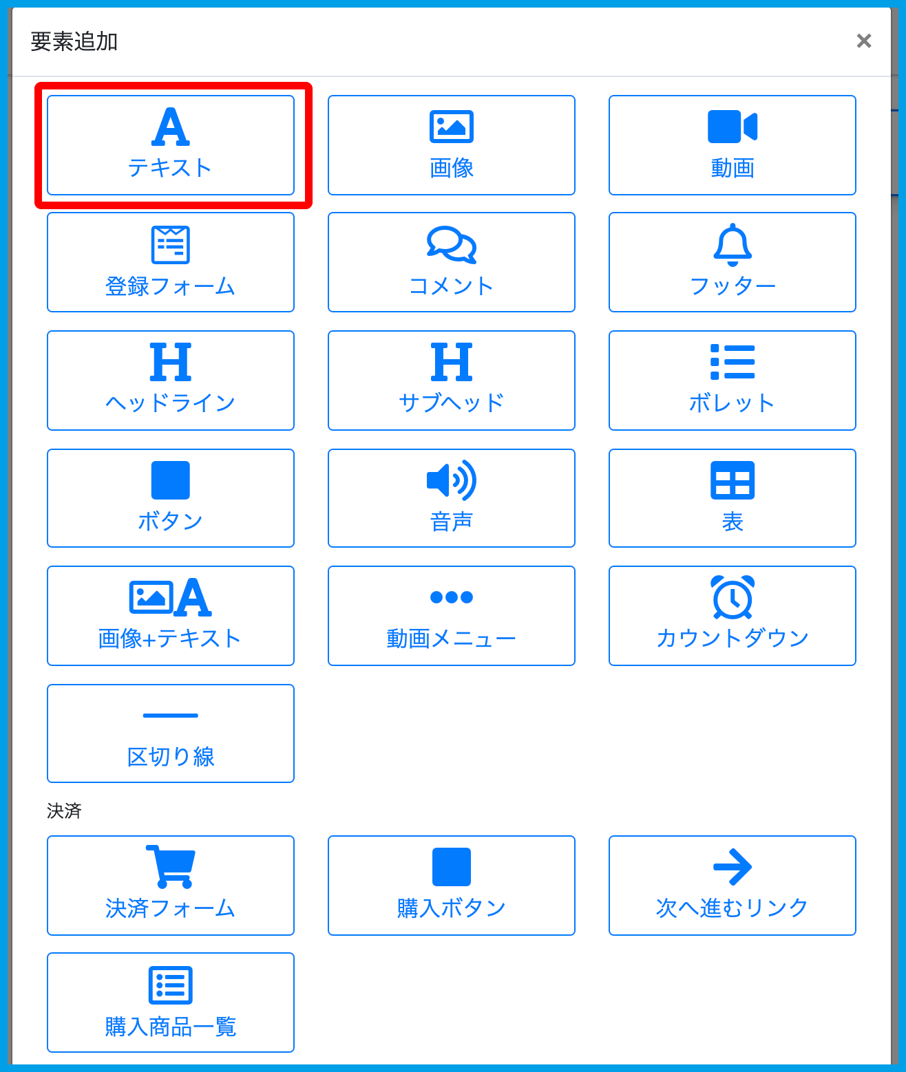 2.ポップアップ表示内にて【テキスト】をクリックします。