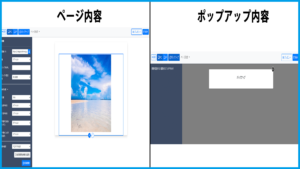 3.編集画面の左上「ページ設定」より【ポップアップ】をクリックします。