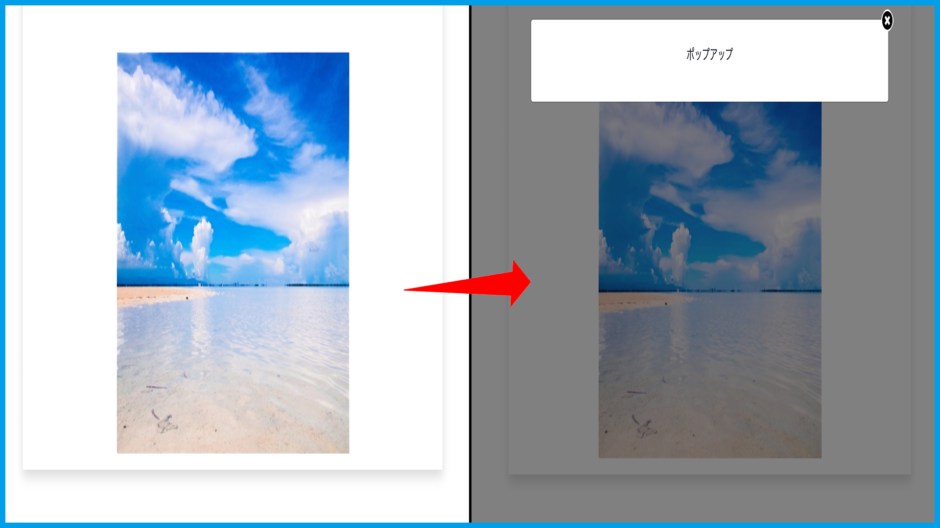 イグジットポップアップ、もしくはボタンを押したらポップアップを表示できる機能となります。