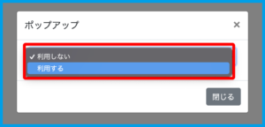 4.「ポップアップ」ウィンドウにて【利用する】を選択してウィンドウを閉じます。