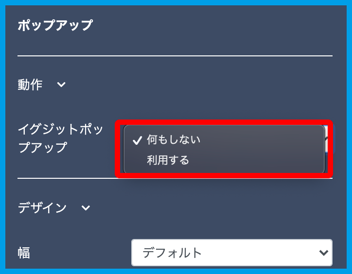 2.ポップアップ詳細メニューの「イグジットポップアップ」を【利用する】にしてください。