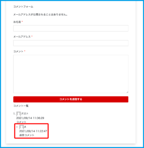 3.メッセージが表示されましたら、コメントの返信は反映されます。