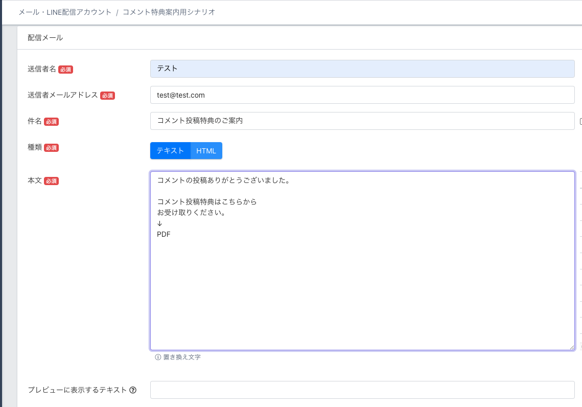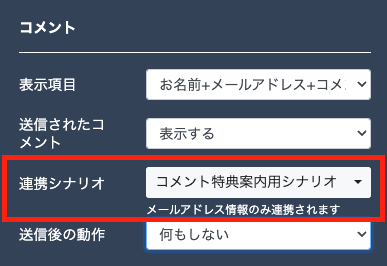 コメント送信した方をシナリオに登録することができます。(メールアドレスのみ連携されます)