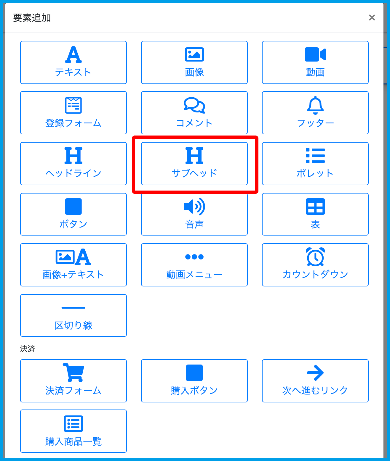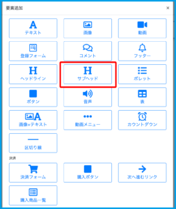 4.ポップアップ表示内にて【サブヘッド】をクリックします。