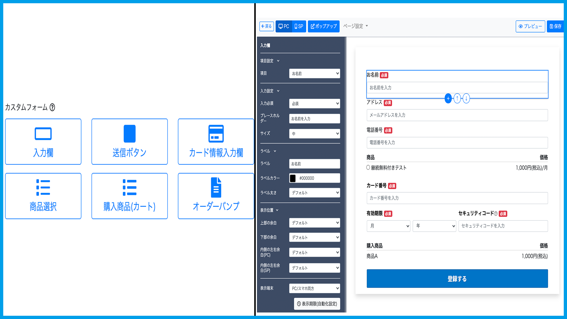 登録フォームや決済フォームのフォーマットをお好みで設定したい場合の要素となります。