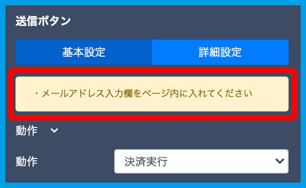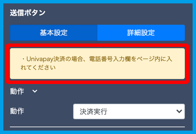 4.「送信ボタン」要素を追加し、動作は「決済実行」を選択します。