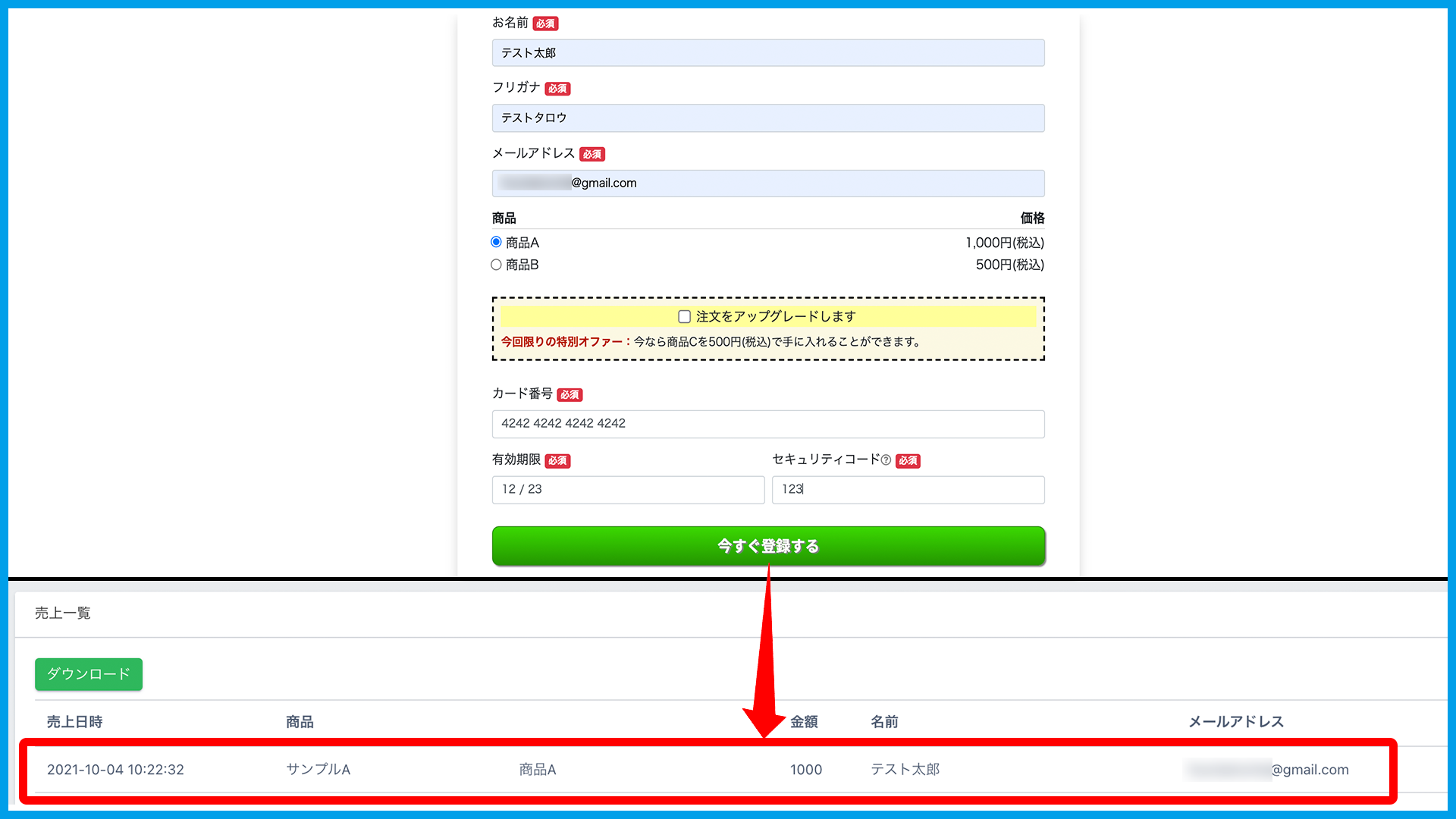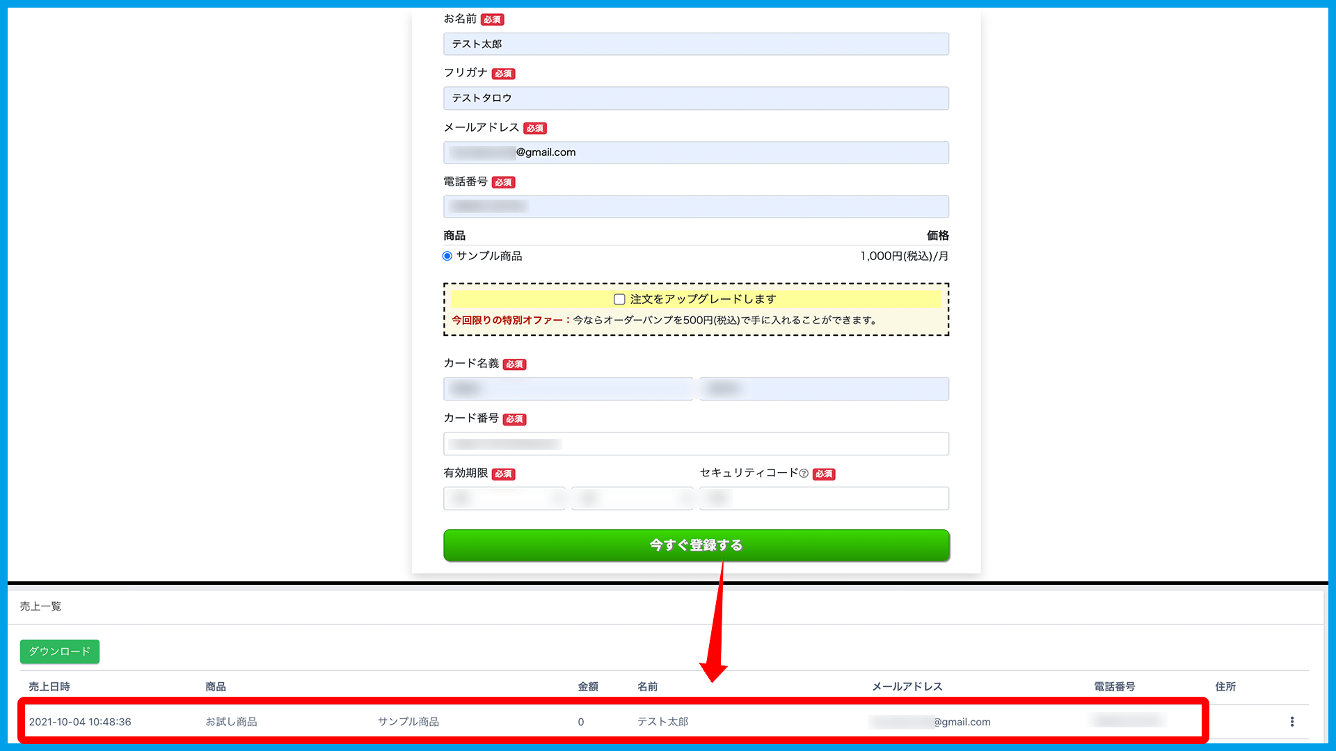 5.設定完了となり、フォームから手続きが行われると売上一覧にも反映されるようになります。