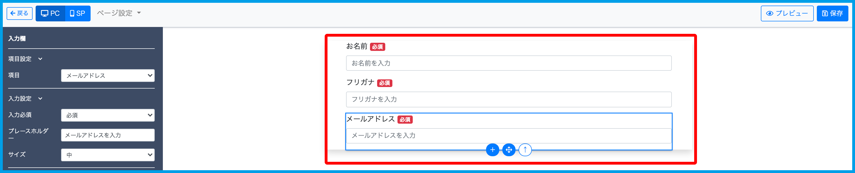 3.入力欄の項目設定が終わりましたら「送信ボタン」要素を追加します。