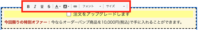 オーダーバンプ要素内をクリックすることで文字サイズを変更することができます。
