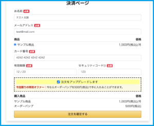 ※オーダーバンプには対応しておらず、通常商品(非オーダーバンプ商品)の1商品のみが決済対応となります。