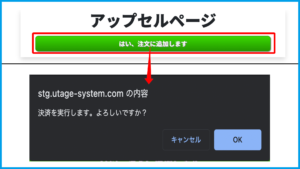 3.アップセルページにて購入ボタンがクリックされ、ブラウザメッセージにて決済の確認が表示されます。