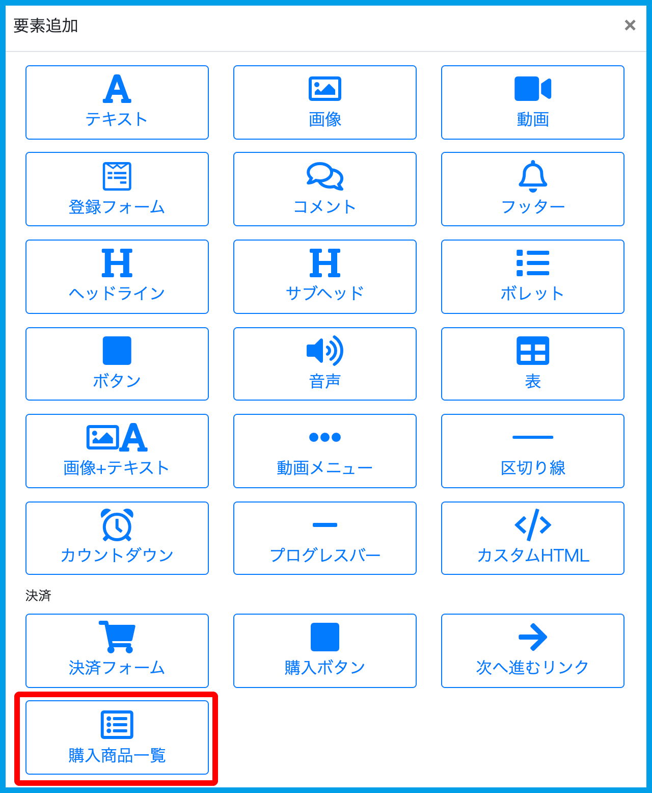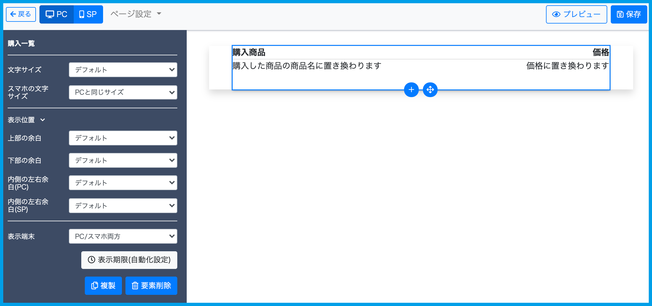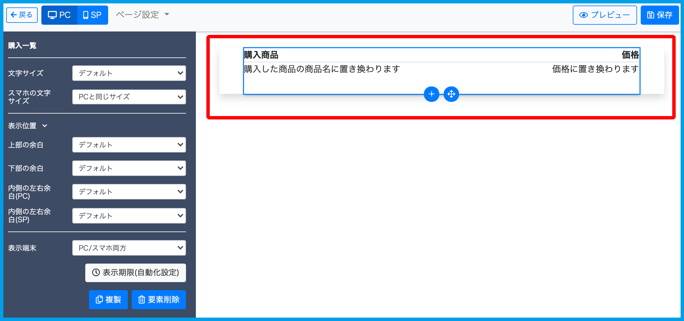 ページ要素【購入商品一覧】とは?