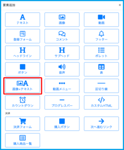 4.ポップアップ表示内にて【画像+テキスト】をクリックします。